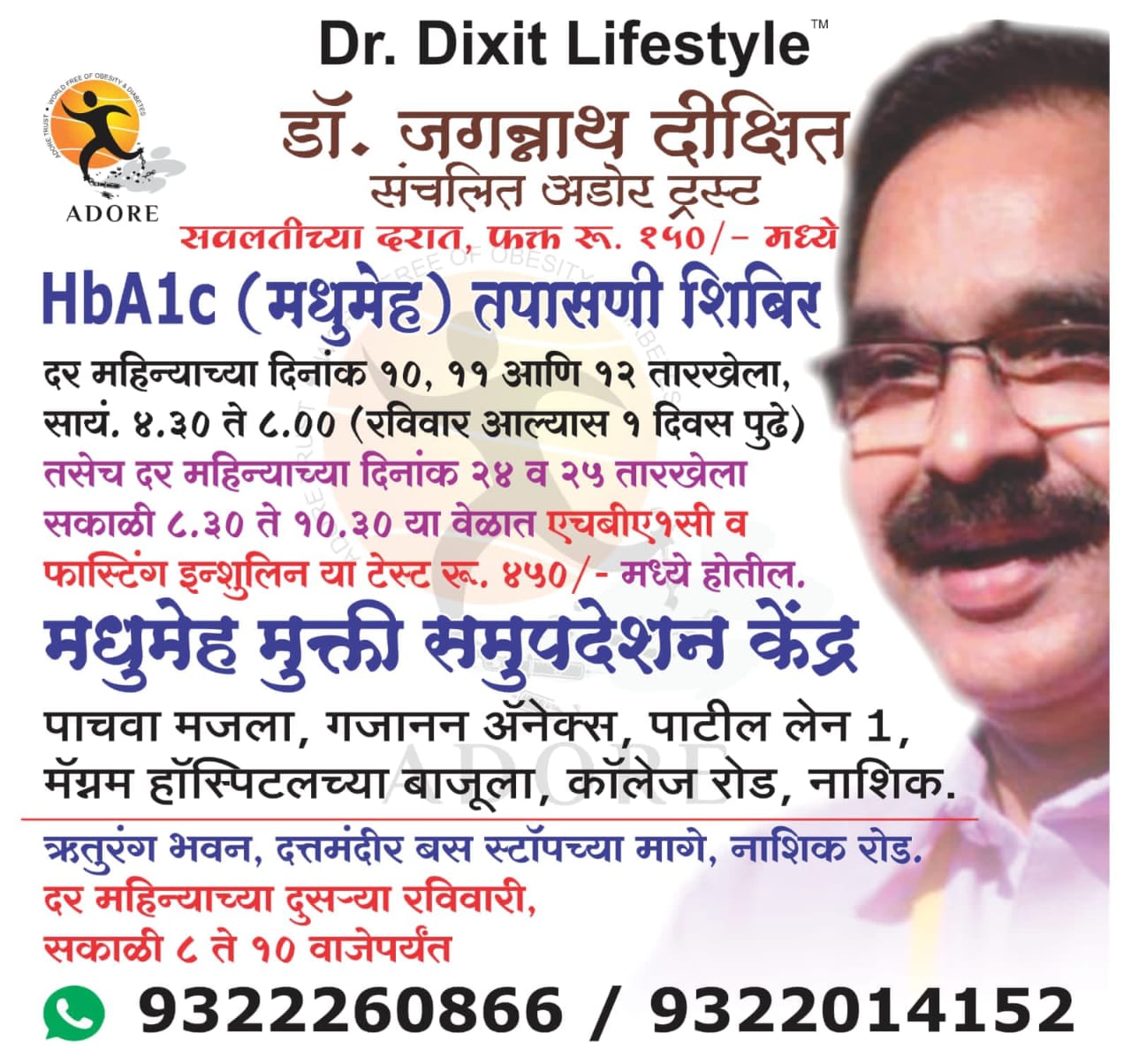 * मधुमेहींनी सहा महिन्यांनंतर तसेच पूर्व मधुमेहींनी तीन महिन्यांनंतर दोन्ही टेस्ट करणे अनिवार्य आहे.