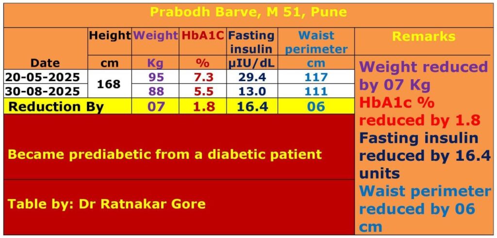 चॅलेंज पूर्ण केल्यानंतरही मी हीच आहार योजना सुरू ठेवली आहे आणि पुढील ६ महिन्यांत एचबीएवनसी ५.५% च्या खाली कायम ठेवणे आणि वजन ७८ किलोपर्यंत आणणे हे माझे लक्ष्य आहे.