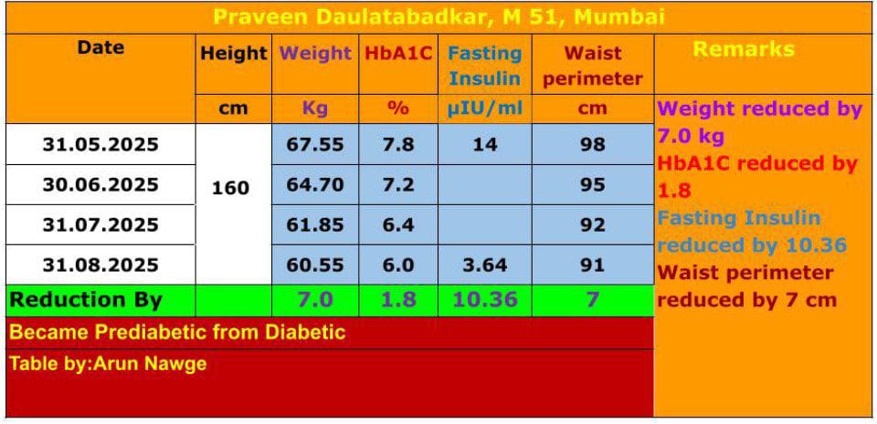 २०२० साली मी यूट्यूबवरील व्हिडिओद्वारे डॉ. दीक्षित जीवनशैली फॉलो करण्यास सुरुवात केली. त्यामुळं जवळपास दोन वर्षे माझे वजन कमी झाले तसेच मधुमेहही नियंत्रणात राहिला. मात्र व्यस्त जीवनशैली व योग्य मार्गदर्शनाच्या अभावामुळे हळूहळू पुन्हा वजन वाढू लागले व एचबीए वन सी चे प्रमाणही वाढले.